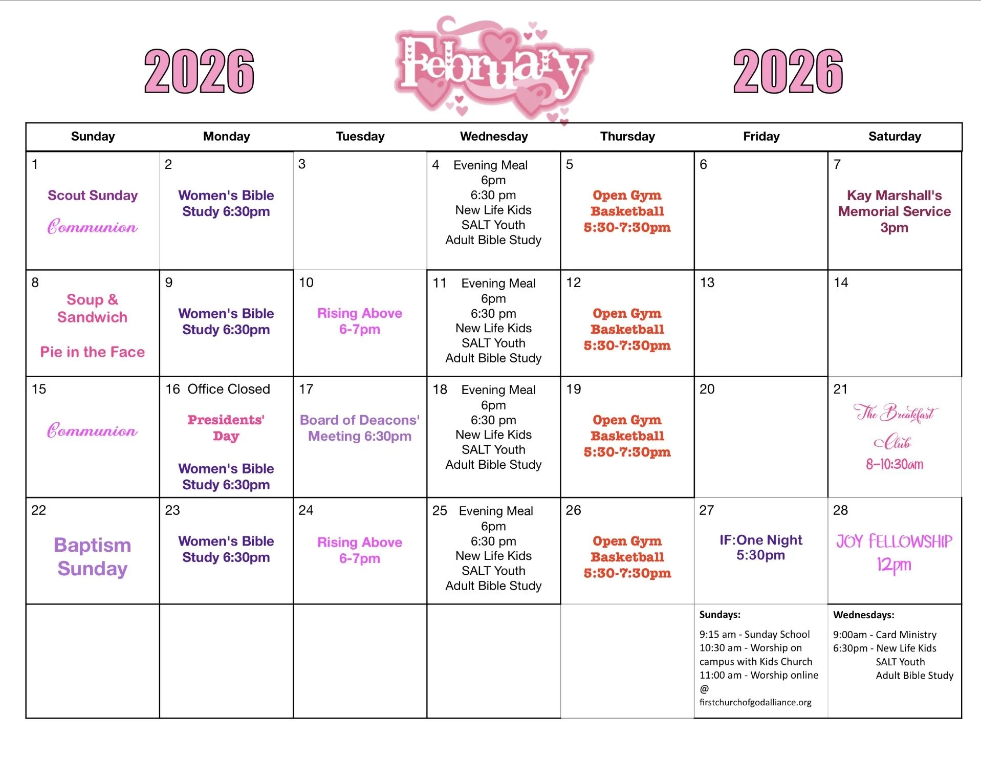 Please note that the Wednesday night menu is subject to change! We will do our best to update you on each week’s menu on our Facebook page and announcement page!