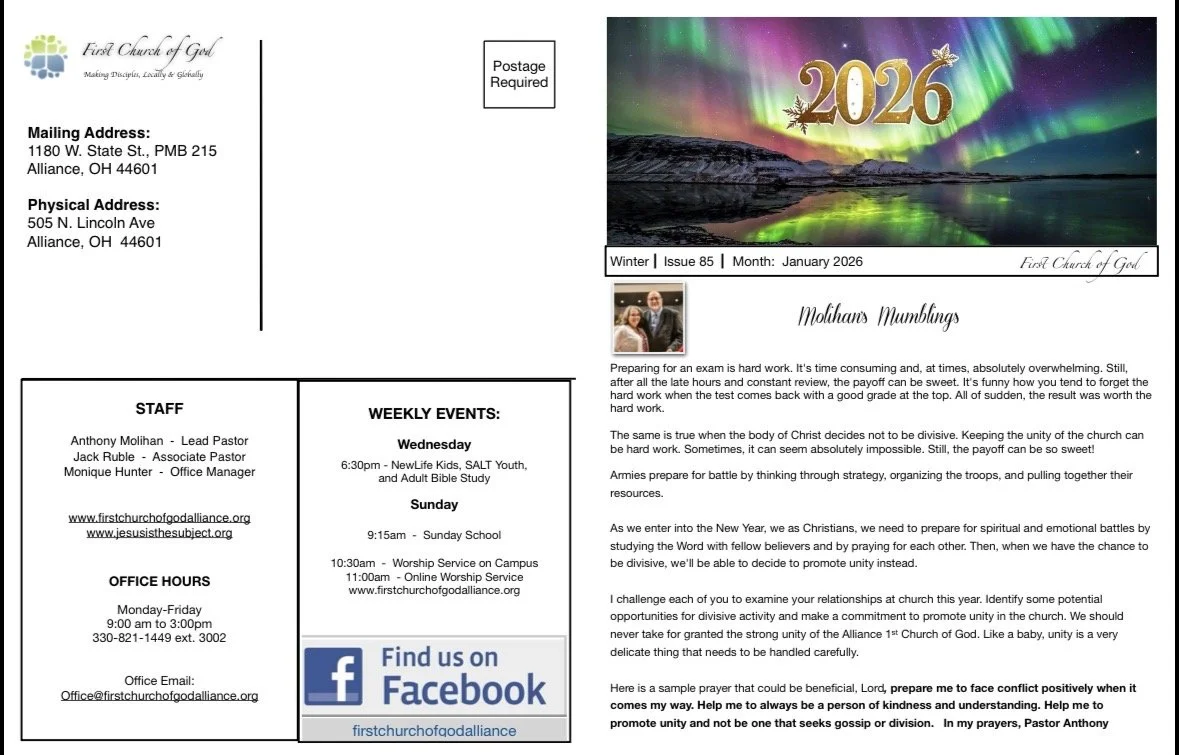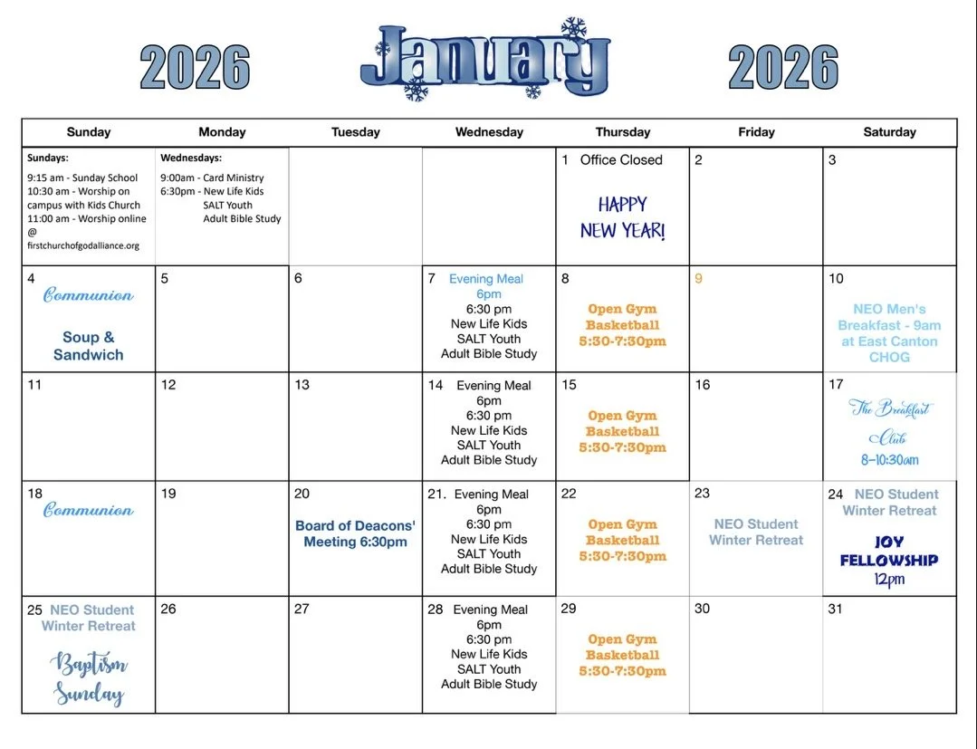 Also, Baptism Sunday is JANUARY 25th, communion will be on January 11th and 25th. We apologize for the confusion!